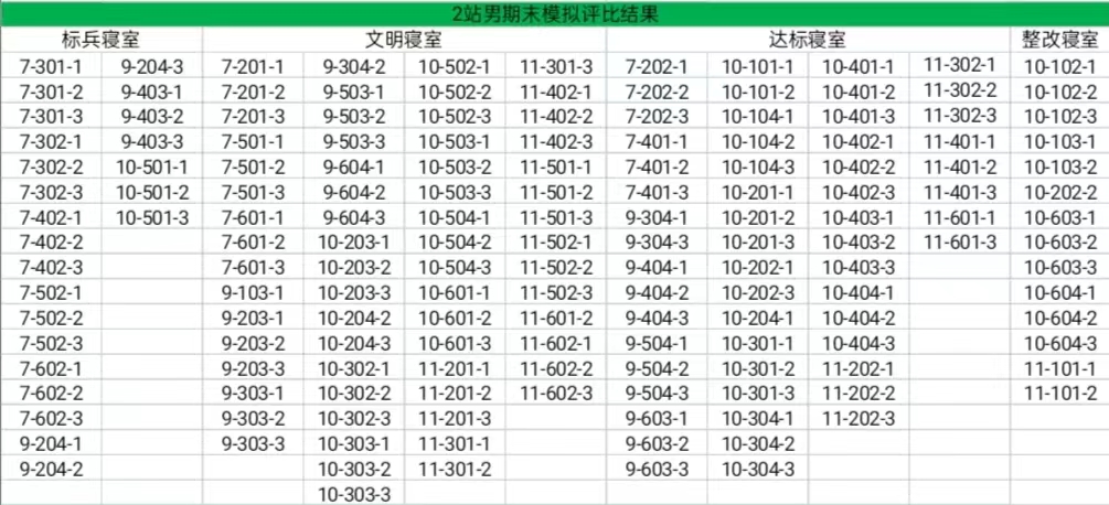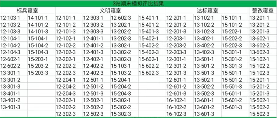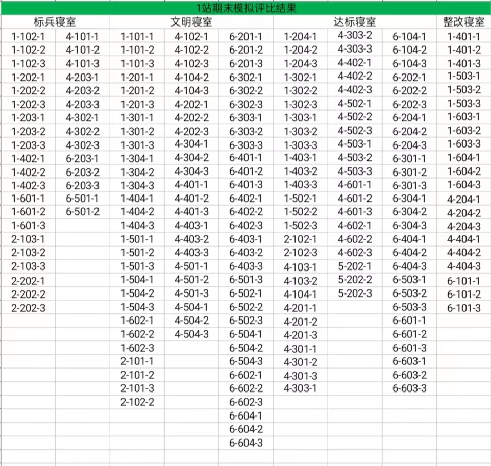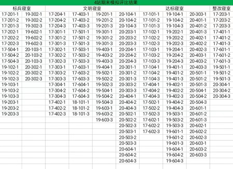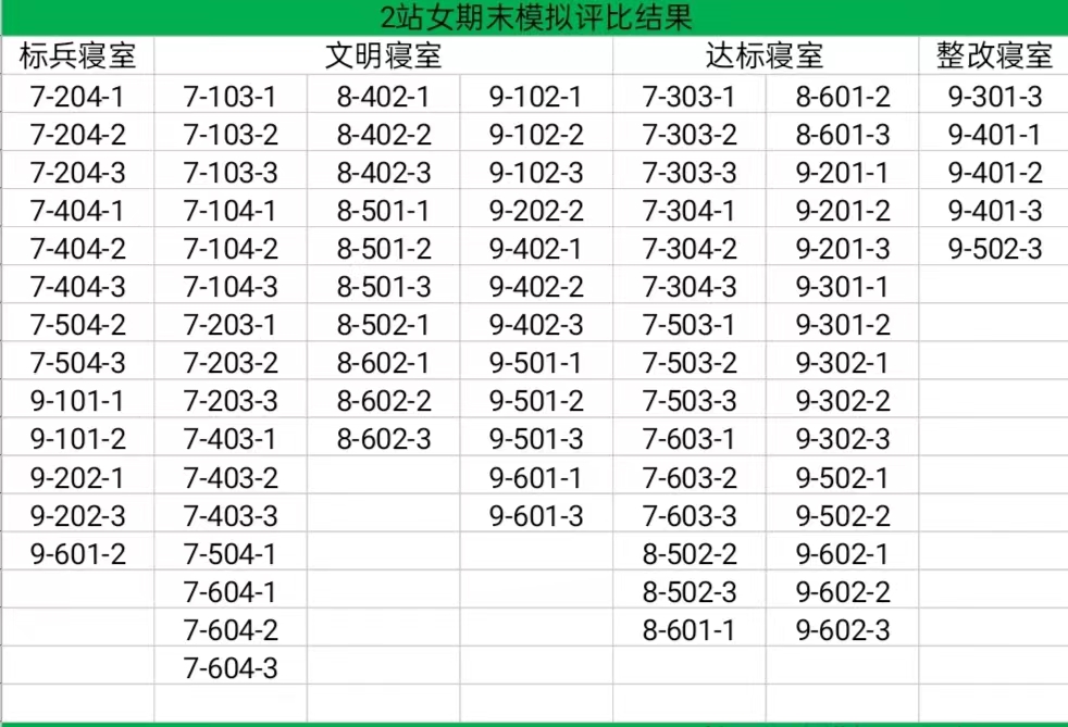 寝室等级划分:(以站区为一个评比单位,男女分开)