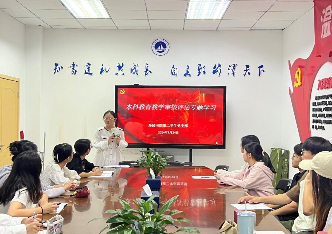 朱梦杨就新一轮审核评估的内容、方针和指导思想展开介绍,带领党员了解评估的程序和方法,明确迎接审核评估的重要意义,强调学生党员在迎评阶段要发挥模范带头作用,向周围同学宣传审核评估知识与要求。党员纷纷表示,会后将认真研读《本科教育教学审核评估应知应会(学生版)》相关知识,以饱满的热情和积极的态度迎接审核评估,营造人人关心评估、全员参与评估的良好氛围,为学校高水平完成审核评估各项任务贡献应有力量。