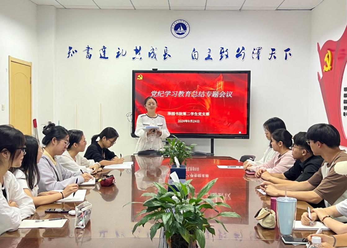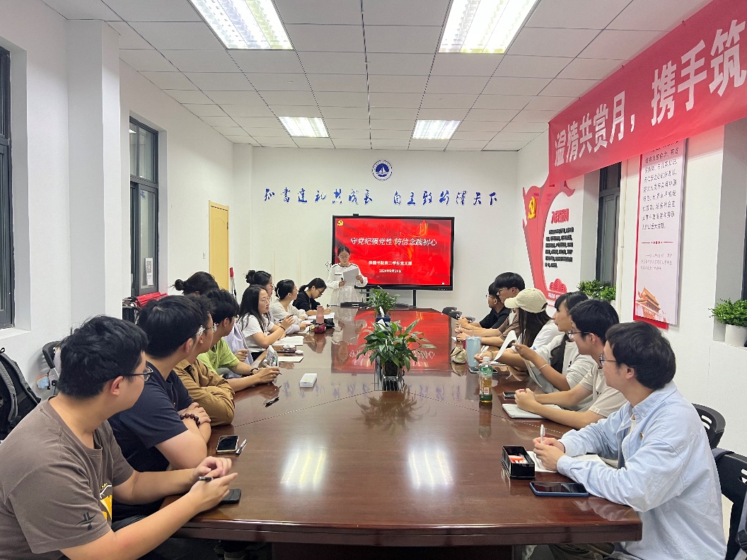为做好党纪学习教育工作总结,鼓舞党员以昂扬的姿态迎接新学年的支部建设工作,9月24日晚,泽园书院第二学生党支部在108会议室开展“守党纪强党性,铸信念践初心”主题党日活动,全体党员参加本次活动,活动由支部书记朱梦杨主持。
