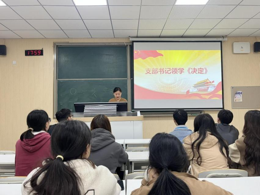 为深入学习贯彻党的二十届三中全会精神,提升党员的政治素养和理论水平,10月24日,泽园书院第八学生党支部在敏达楼201开展“领悟全会精神,凝聚奋进力量”主题党日活动。本次活动由支部书记张迪主持,支部全体党员参加。