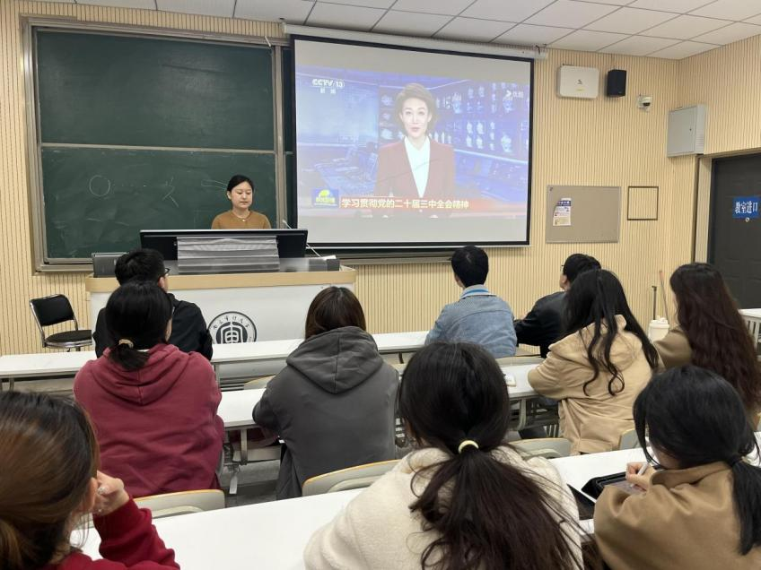 最后,两名学生党员分享了关于学习党的二十届三中全会精神的心得体会。彭川川表示,党的二十届三中全会是在以中国式现代化全面推进强国建设、民族复兴伟业的关键时期召开的一次非常重要的会议。作为青年党员,我们要深入学习党的二十届三中全会精神,对自身肩负的使命任务有高度的清醒认识,为不断谱写新时代改革开放新篇章添砖加瓦。张星雨认为,作为青年党员不但要加强思想理论的学习,还需进一步将理论与实际相结合、思想与实践相结合,将全会精神内化于心、外化于行,积极发挥先锋模范作用,带动身边的同学共同进步,为祖国建设贡献力量。